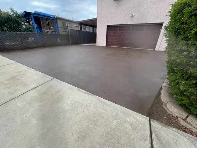 Our crew at Saber Foundation Repair prepped this El Cajon driveway for a DecoShield concrete coating. The surface was cleaned, joints were sealed with NexusPro®, and all edges were carefully masked off to ensure a precise, even application. This step is key to achieving a smooth, durable finish that enhances both protection and curb appeal. Here’s the finished result — a beautifully rejuvenated concrete driveway protected with DecoShield™. The deep tone not only improves curb appeal but also shields the surface from UV damage, water, and stains. Combined with PolyLevel® and NexusPro®, this driveway is now lifted, sealed, and sealed in style.