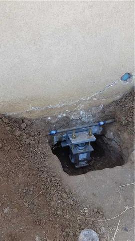 The base of this Sun City home was cracking. Saber used push piers to strengthen the foundation. This is a picture of a installed push pier.