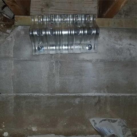 Universal Foundation Plate installation shown as part of a comprehensive seismic retrofit. This hardware anchors the sill plate to the foundation, preventing lateral movement and reducing earthquake damage risk to the structure.