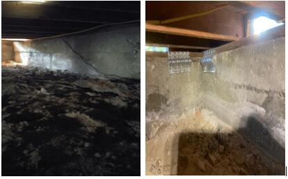 The before and after photo of universal foundation plates (UFPs) being installed on a footing and sill plate.