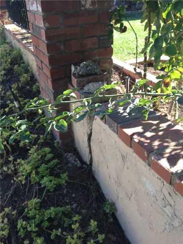 The crack in the planter shows the severity of the settlement. The problem is that the soils under the foundation of this wall have settled and cause the wall to begin separating and the cracks to form.