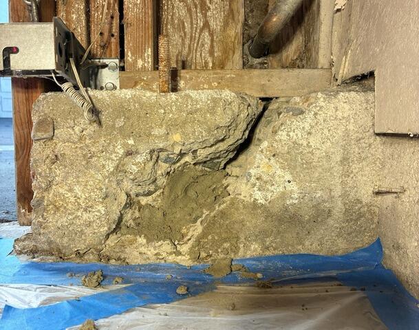 A stem wall in a San Juan Capistrano home with a rusting rebar was repaired by Saber Foundation Repair. Crews removed the rusting rebar, which caused the stem wall to crack and crumble, and replaced it with a composite rebar that won't rust.
